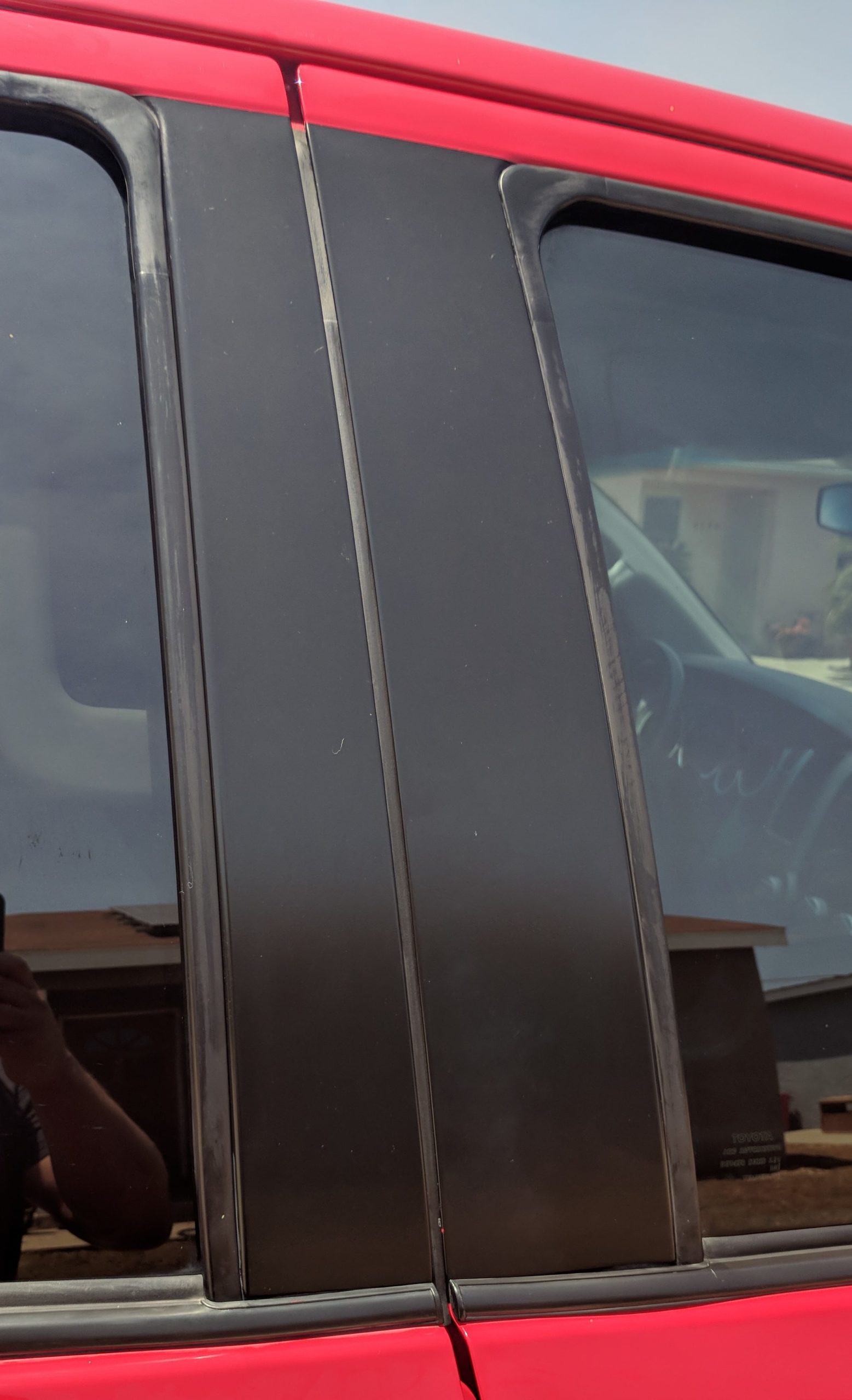 I used the sponges on anything that was black and plastic and it came out really well. The B pillar is painted black and I was using wax on it, but the Meguiars did a great job also without looking chalky.