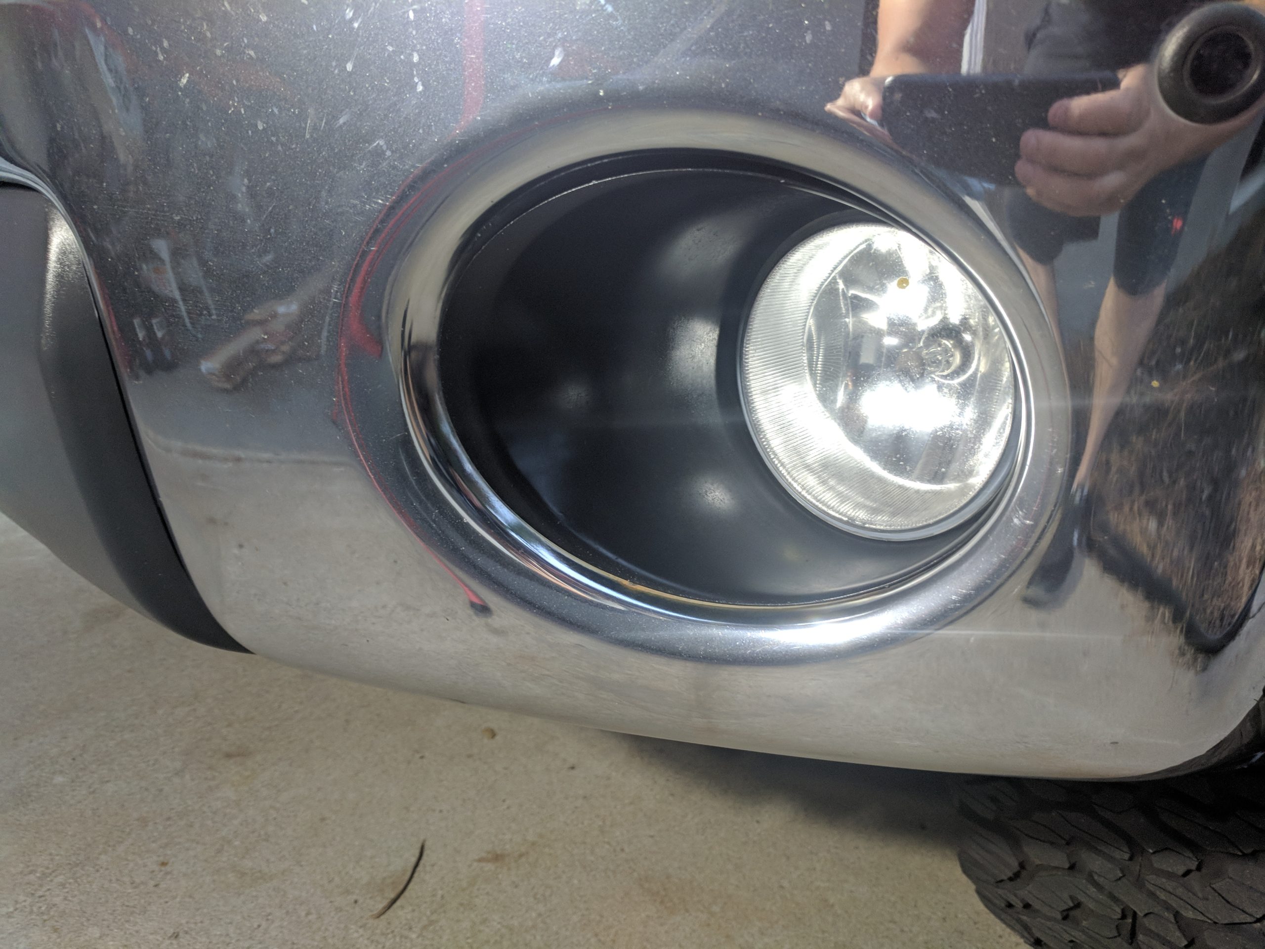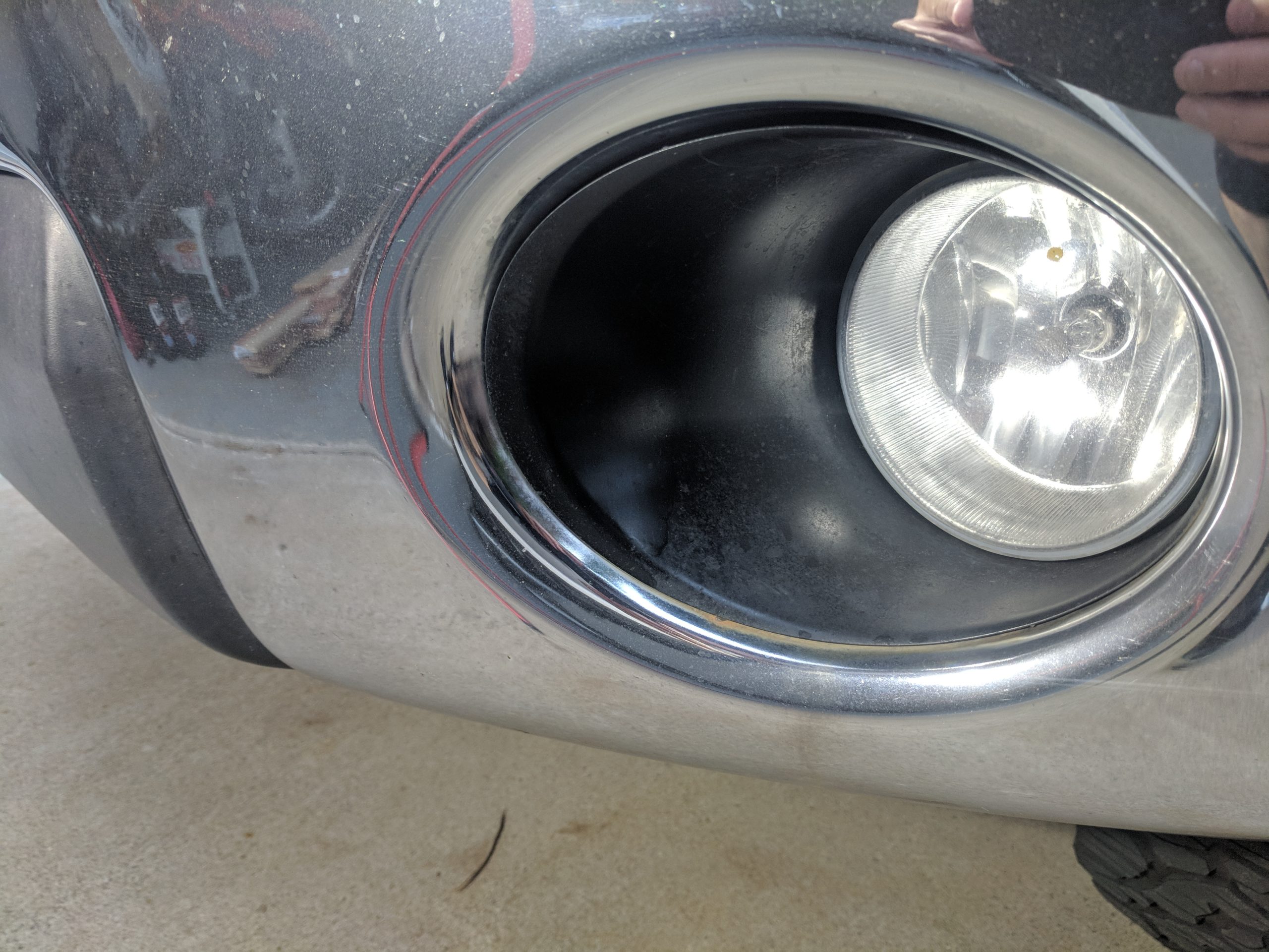 The fog lights didn’t really improve much even though they were pretty pitted from rocks. The bottom bumper was easier to apply to if you remove the license plate.