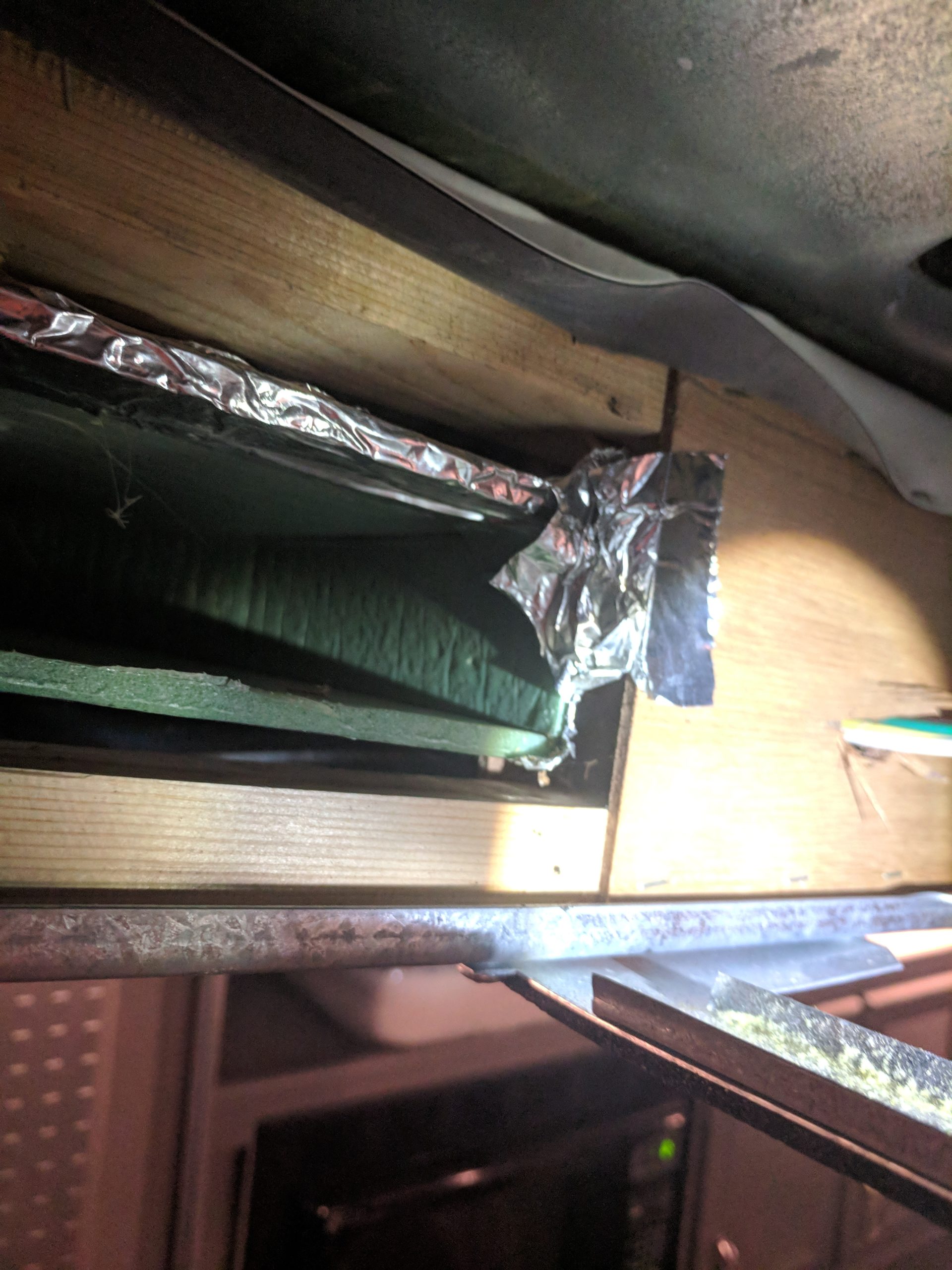 On each side of my AC intake, there are wires poking through the duct. This might not look like a big deal, but the air being sucked in through these holes comes straight from the roof space of the RV. It’s like a blowing a small stream from a hair dryer into the intake of your air conditioner.