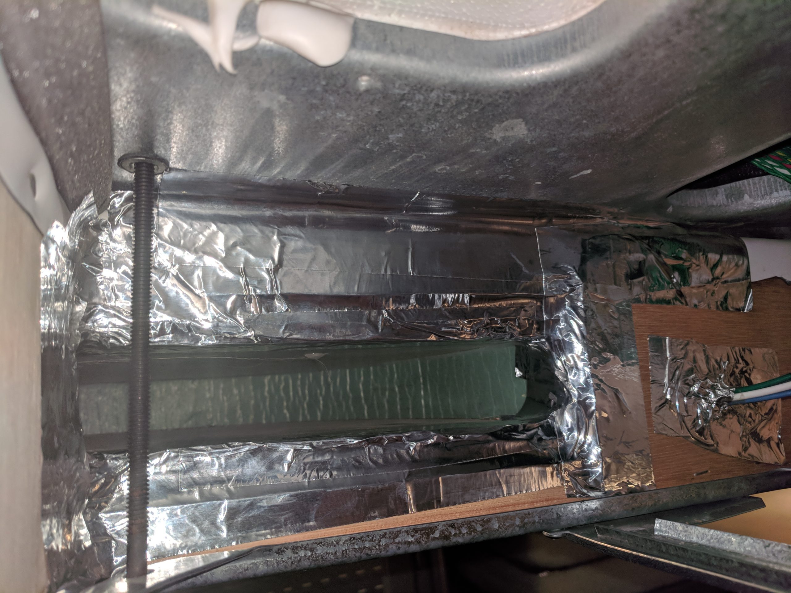 Use the foil tape to cover up these holes. I had wire hole openings on each side of my AC intake.