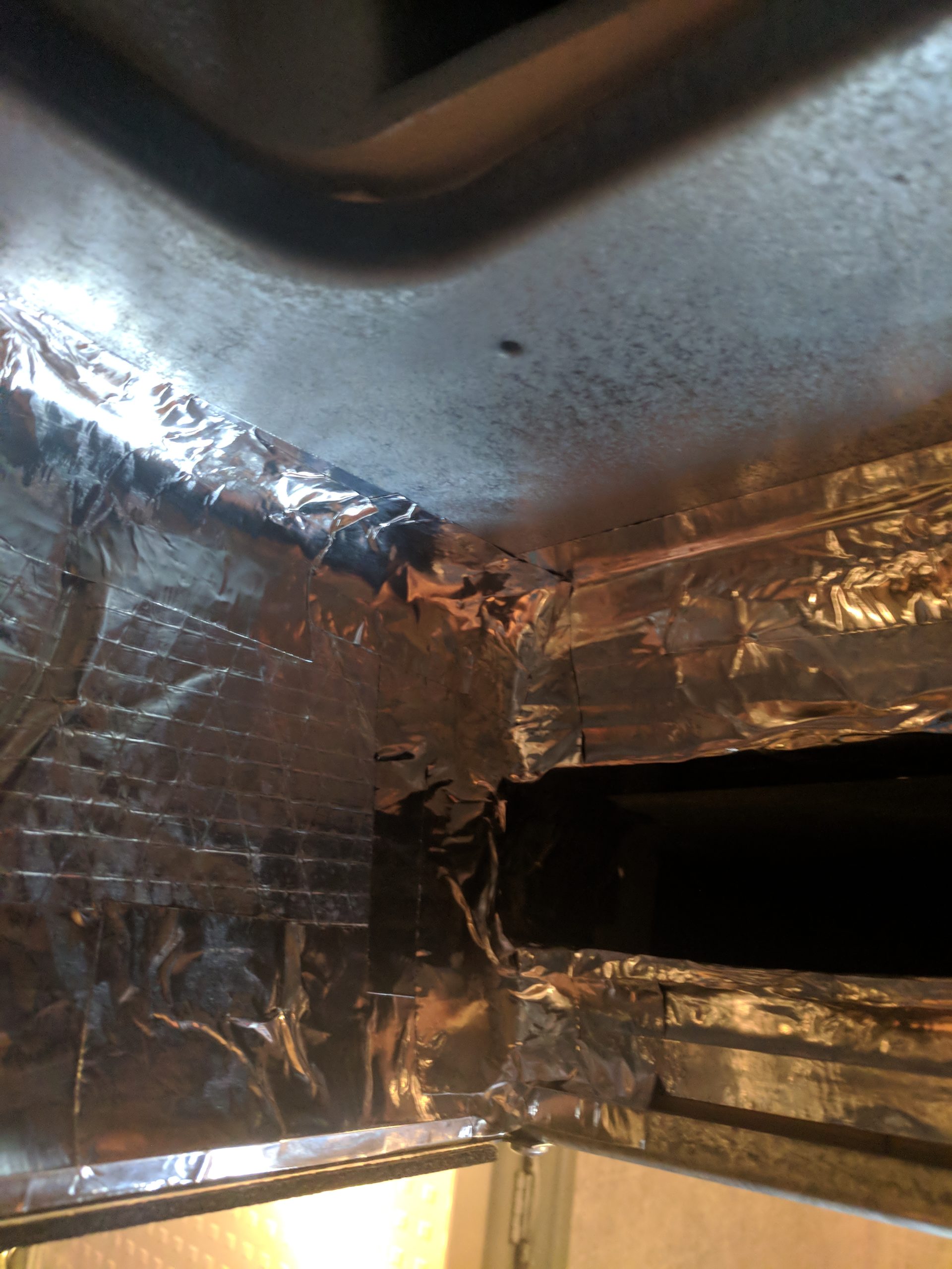 I peeled the factory foil off and used the weather seal foam to fill in the gaps. I then went to town covering duct opening with the foil tape.