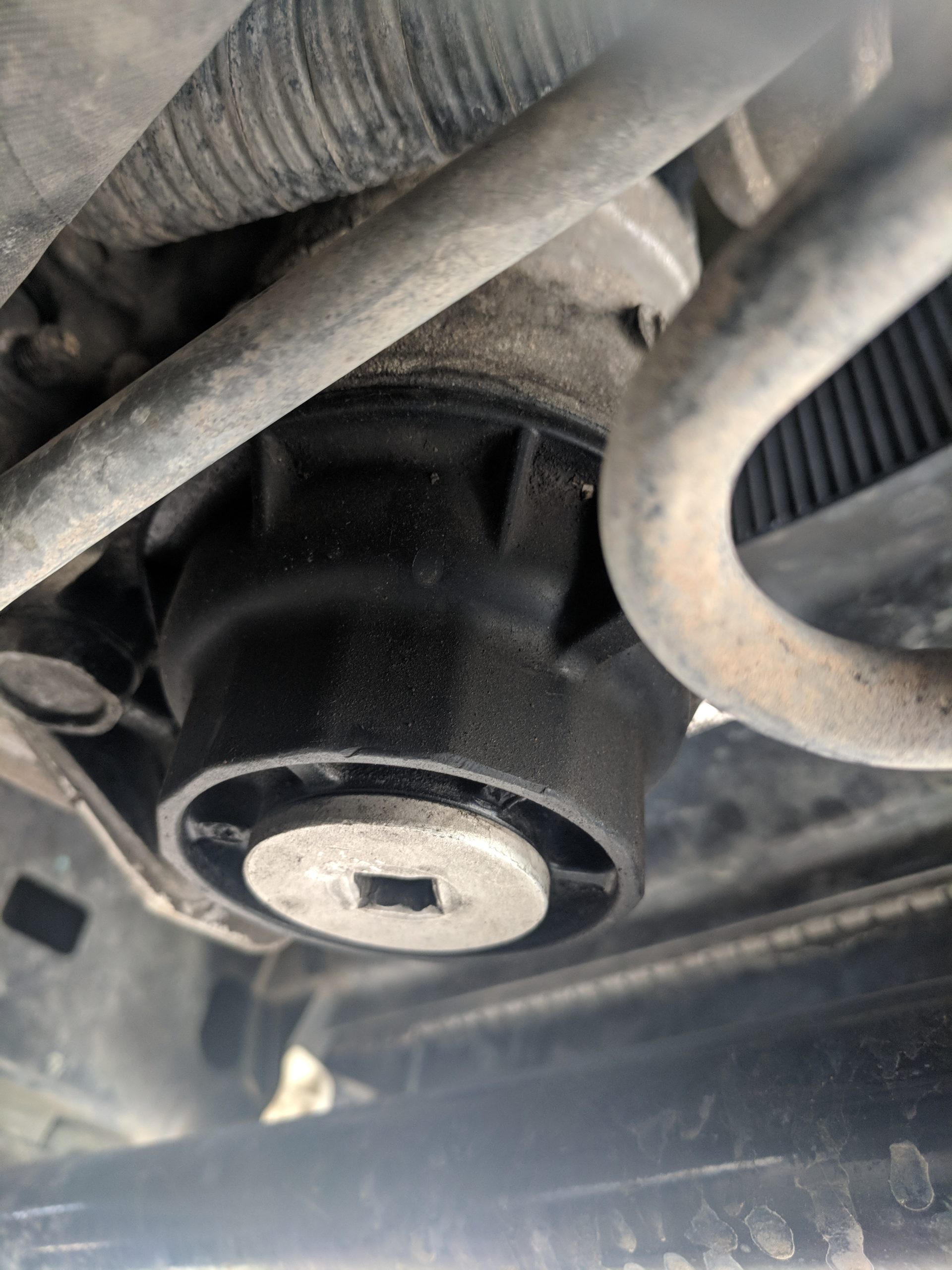 On the bottom of the filter housing is a drain cap. This can be taken off with a 3/8 inch socket wrench extension. There is usually a little oil that leaks out when you take the cap off, but it’s not more than an ounce or so. This cap covers a drain valve that can leak a little over time and this cap seals it off.