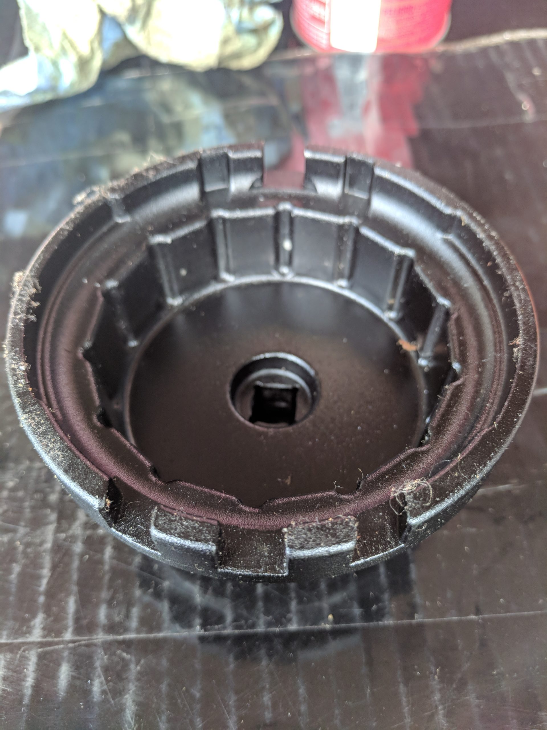 One special tool you will need is a Toyota specific oil wrench. The oil filter is a cartridge type and it’s held in a plastic housing. The tool slips over the end of the plastic housing and lets you unscrew it using a socket wrench.