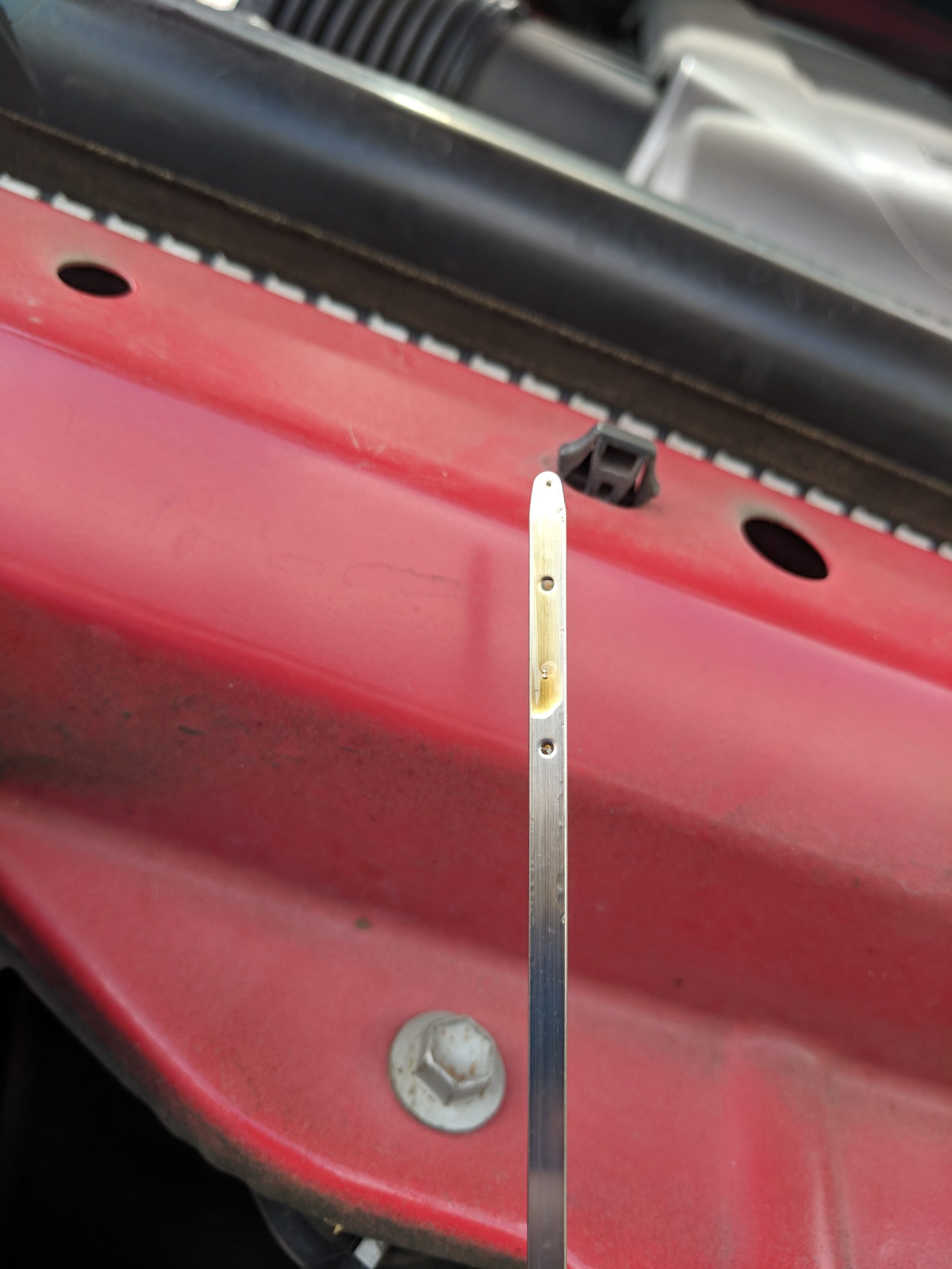 - Oil level on dipstick