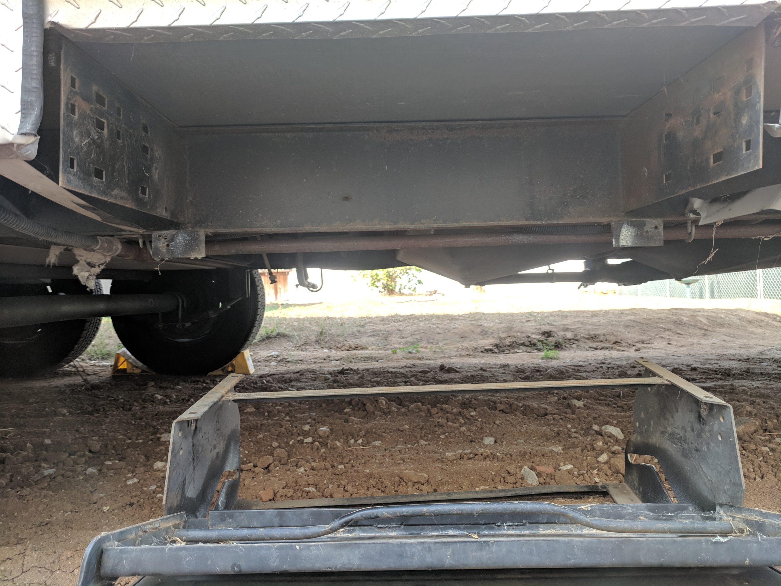 To remove the steps, there are two bolts on each side. On mine, there was also a bracket in the back that was added for stability. To remove the steps, remove the four bolts and two screws. The steps will slide out as one complete unit.
