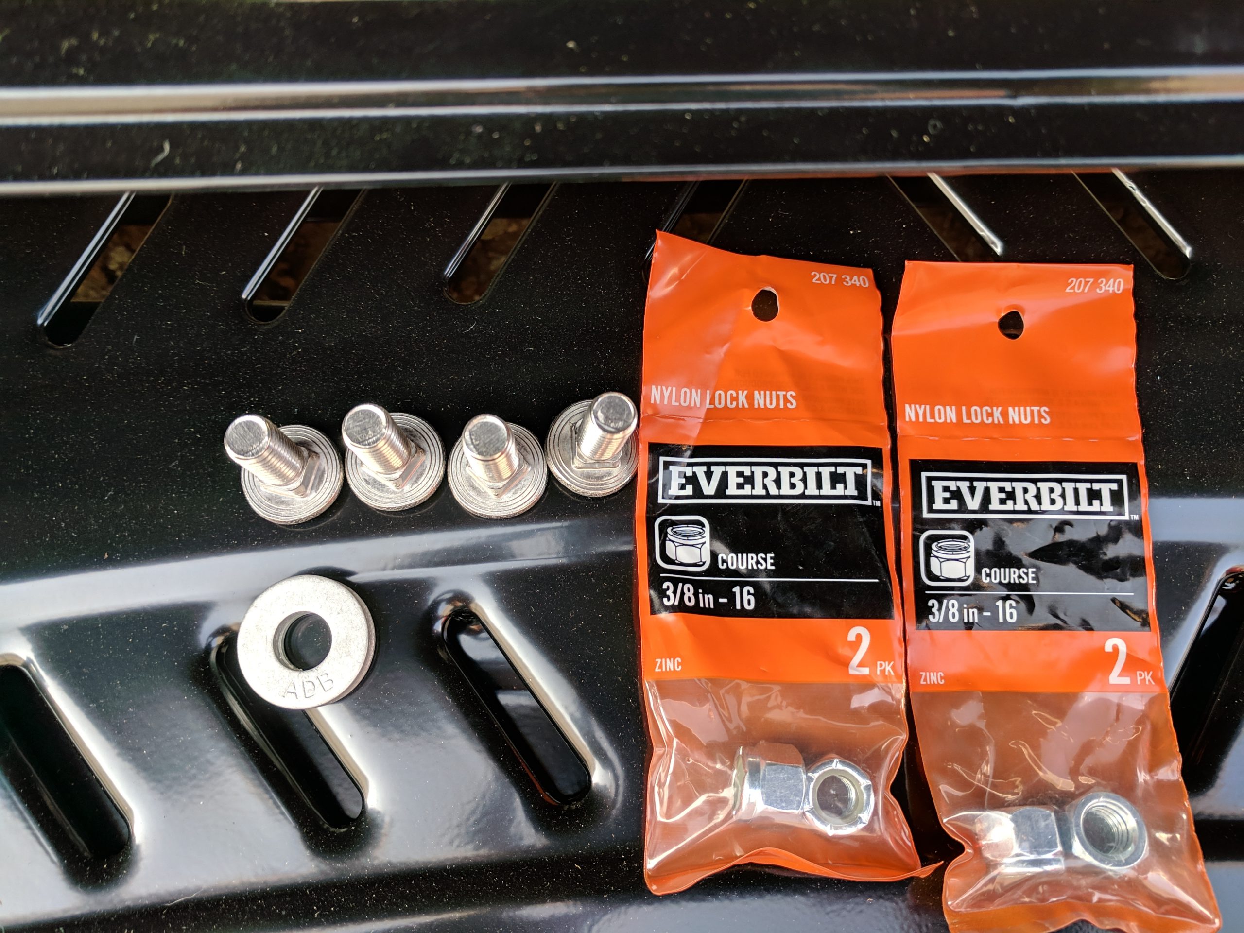 Before installing the new steps, I painted the bracket with some Rustoleum while I had the stairs out. You don’t need to do this, but it was an extra step that I did while I had access. Another thing I got was new hardware for mounting the steps. I could have reused the old hardware, but for only a couple of dollars, I replaced it.