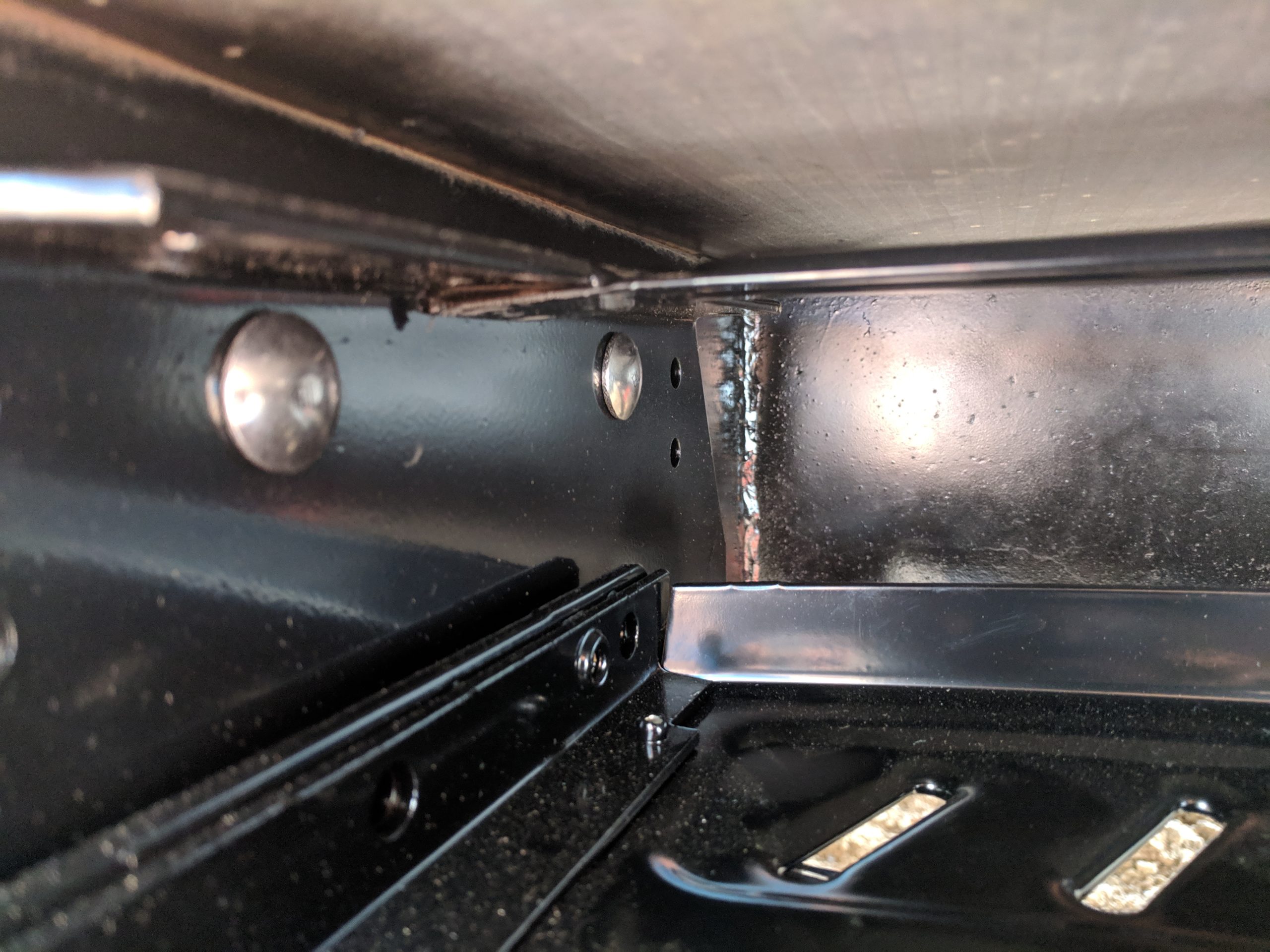 The bottom step folds up, and the bottom extension of the steps rides as a pin along the groove in the frame. Like I mentioned before, the stairs were damaged and were hard to extend and fold away. Another problem was the constant squeaking of the steps whenever I walked on them. I found out that the weld on the stair pin had cracked. No matter how much lube I put on it, the stairs still made and noise. After looking at how much a replacement costs on Amazon, I decided to replace the steps.
