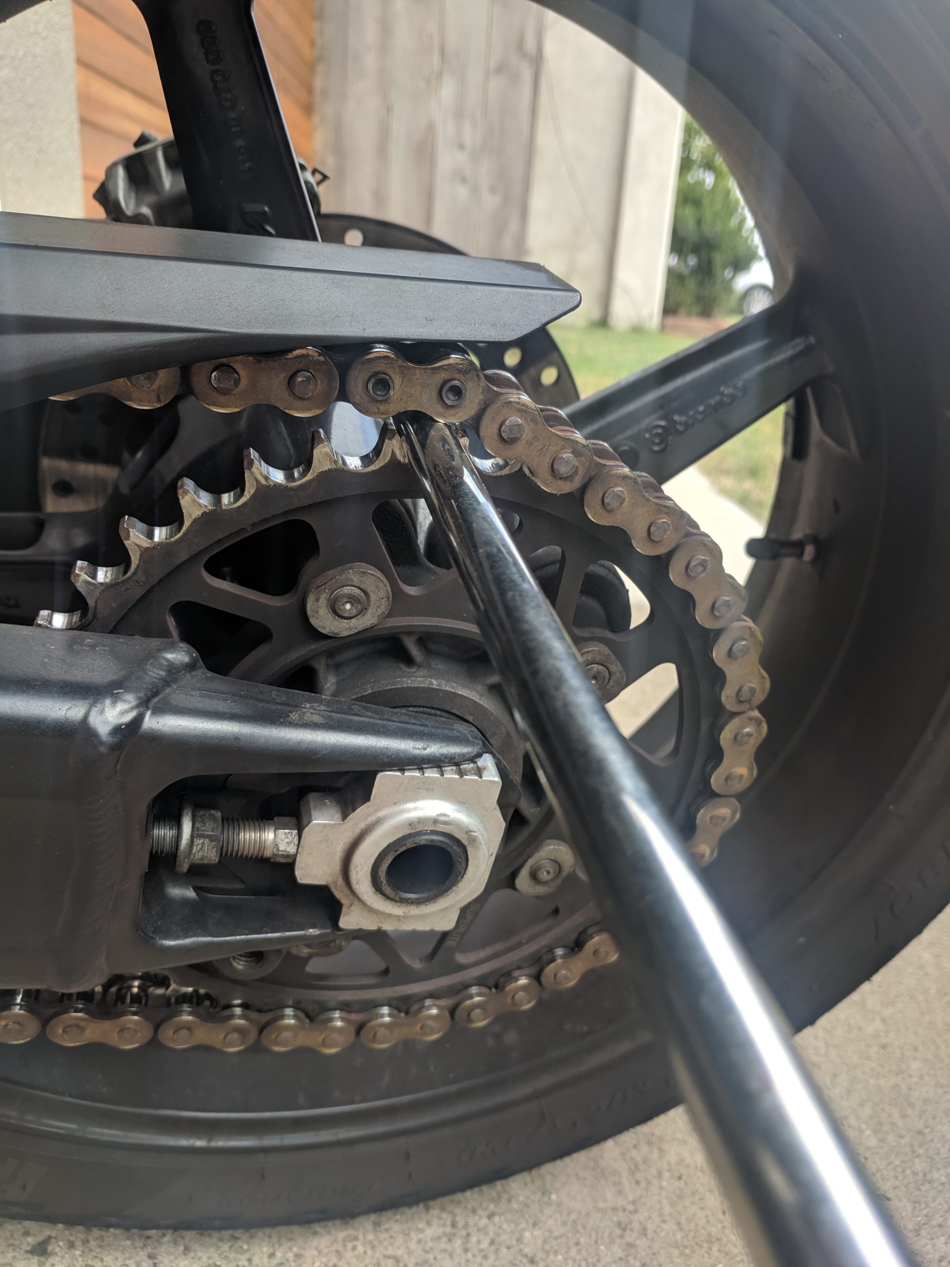 My bike is a 2008 KTM SuperDuke 990 that I use as a daily commuter. This past time I let the chain get a little to lose and it started to rub against the side of my wheel and part of my swingarm.